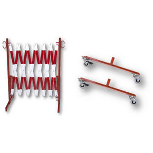 Barrière extensible, avec 2 pieds équipés de roulettes, rouge / blanc, longueur max. 4000 mm