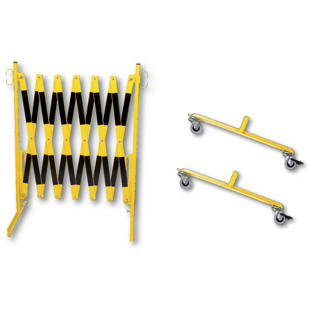 Barrière extensible, avec 2 pieds équipés de roulettes, jaune / noir, longueur max. 4000 mm