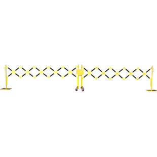 Barrière extensible, pied en acier et roulettes, jaune / noir, longueur max. 16000 mm