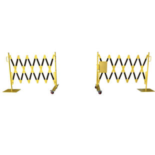 Barrière extensible, pied en acier et roulettes, jaune / noir, longueur max. 4000 mm